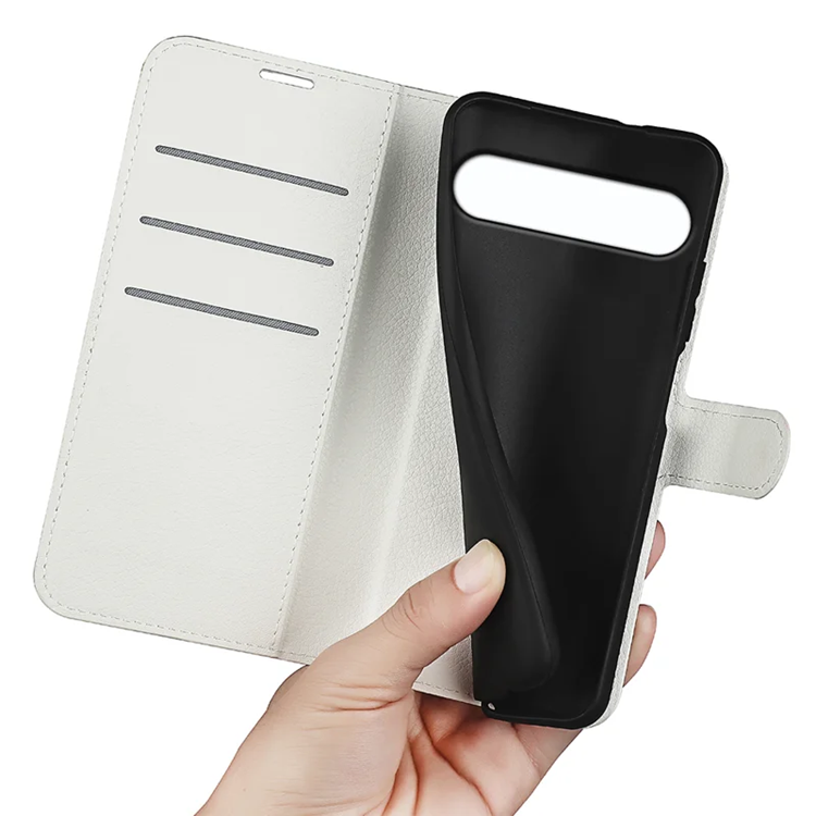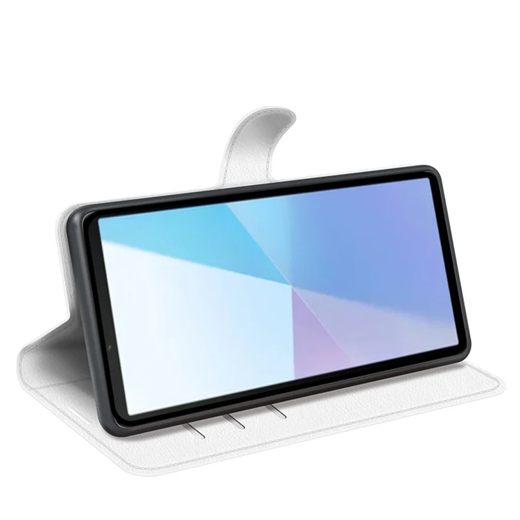 Sony Xperia 10 VII Plånboksfodral Litchi Texture Shockproof - Vit