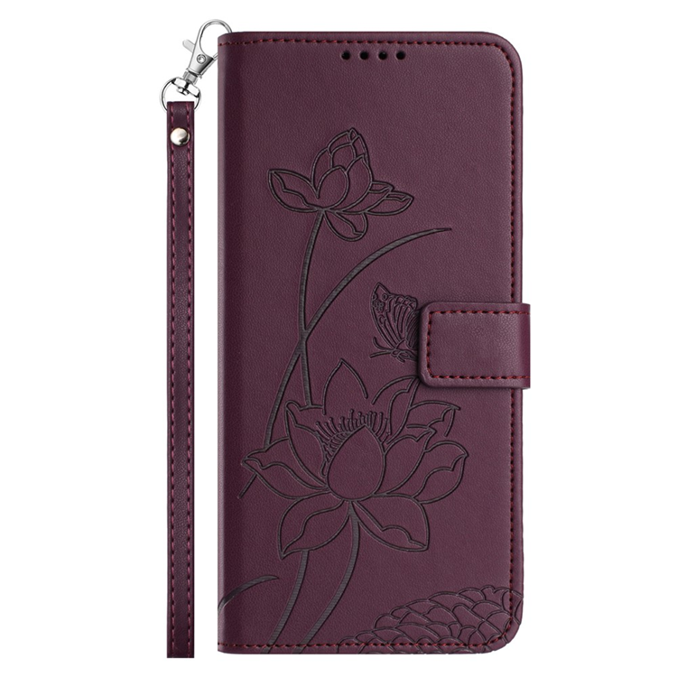Sony Xperia 10 VII Plånboksfodral Lotus Imprint Läder Stand Med Strap - Vinröd