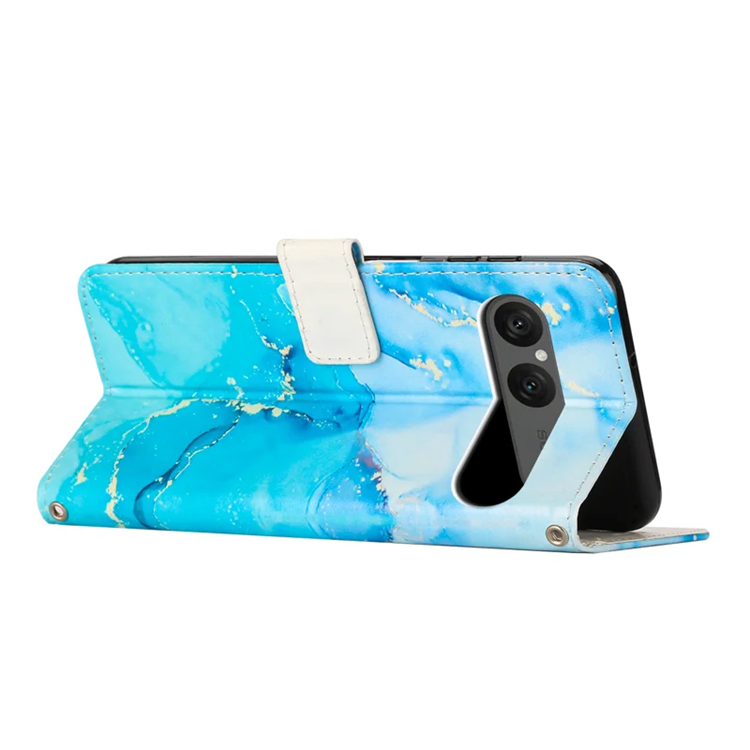 Sony Xperia 10 VII Plånboksfodral Marble Pattern PU läder - Blå / Grön