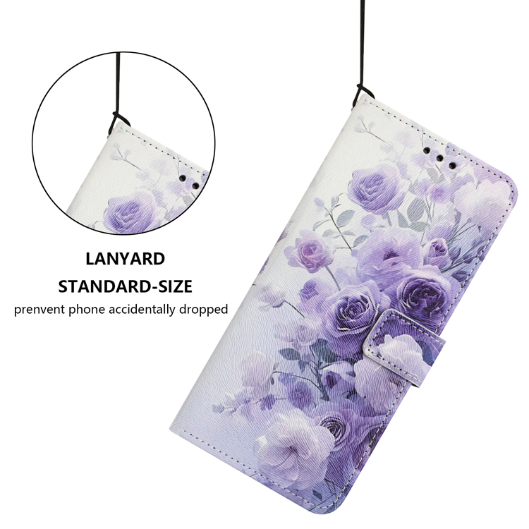 Sony Xperia 10 VII Plånboksfodral Pattern Printing Läder Med Landyard - Lila Rose