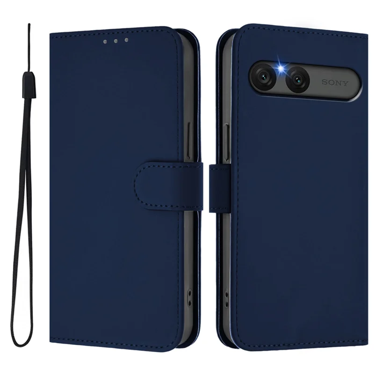 Sony Xperia 10 VII Plånboksfodral Solid color Läder med Rem - Marinblå