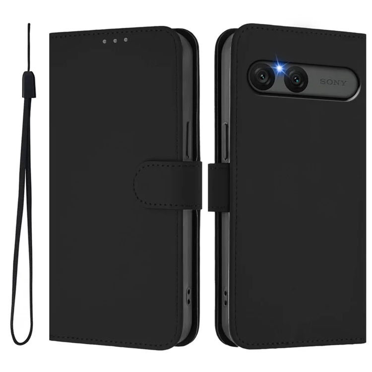 Sony Xperia 10 VII Plånboksfodral Solid Color Läder med Rem- Svart