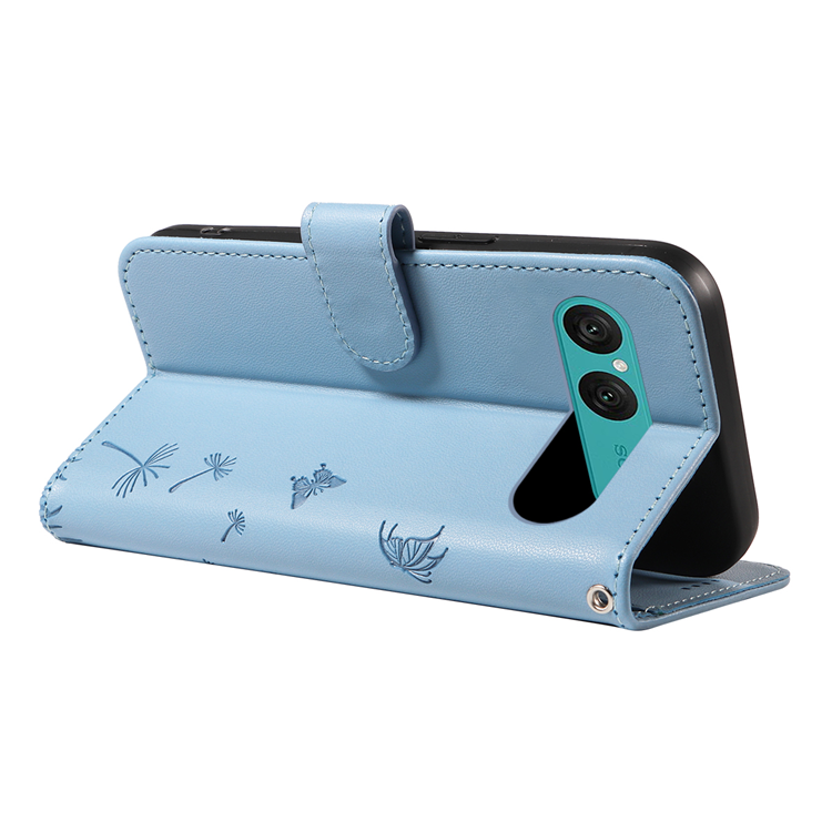 Sony Xperia 10 VII Plånboksfodral Strap Dandelion Imprint Läder - Himmelsblå
