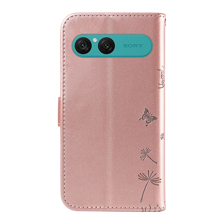 Sony Xperia 10 VII Plånboksfodral Strap Dandelion Imprint Läder - Roséguld