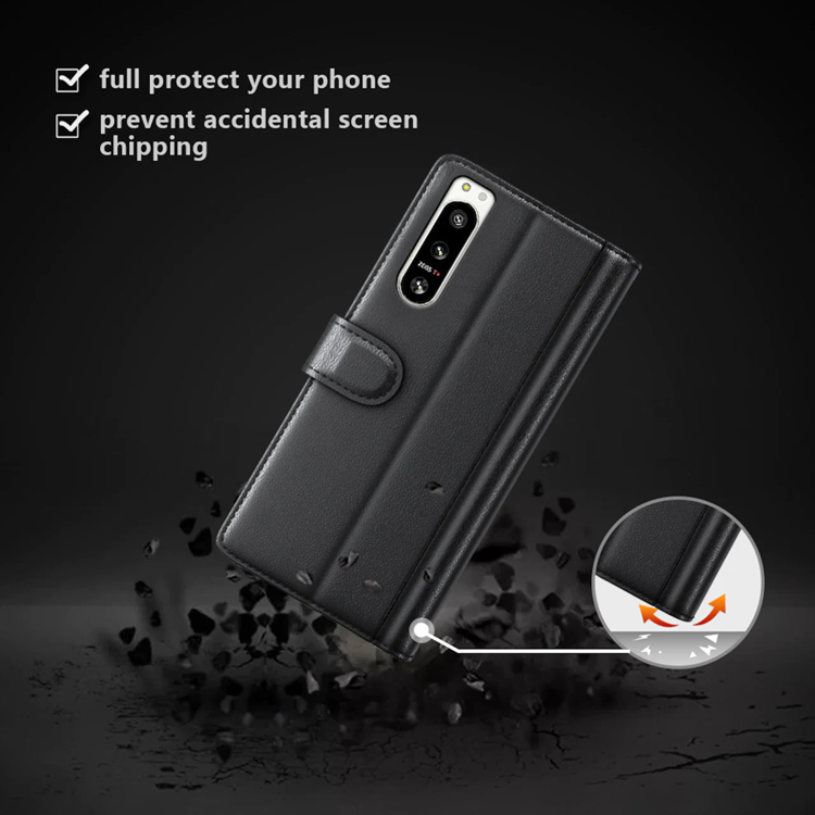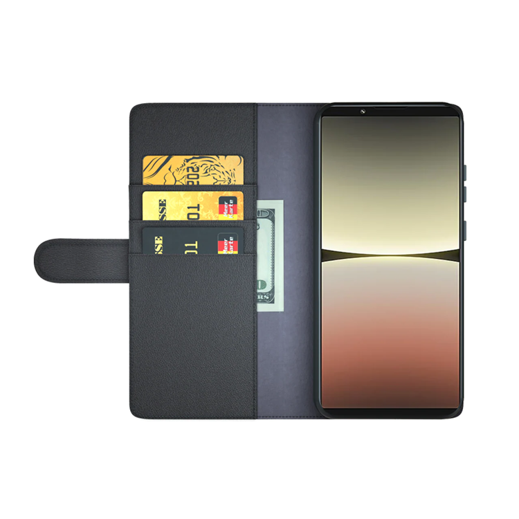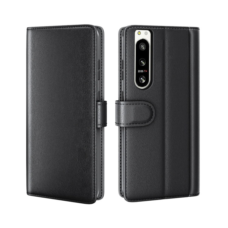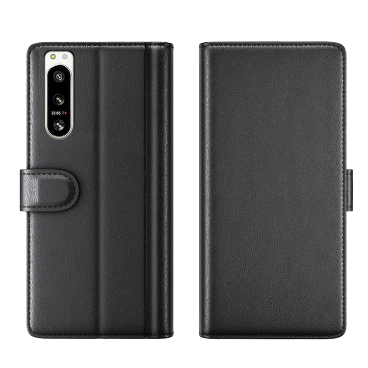 Sony Xperia 5 IV Plånboksfodral Äkta Läder - Svart