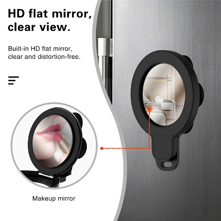 Spegelstativ För Mobil MagSafe med Silikon Sugkopp Fäste Inbyggd Spegel - Svart