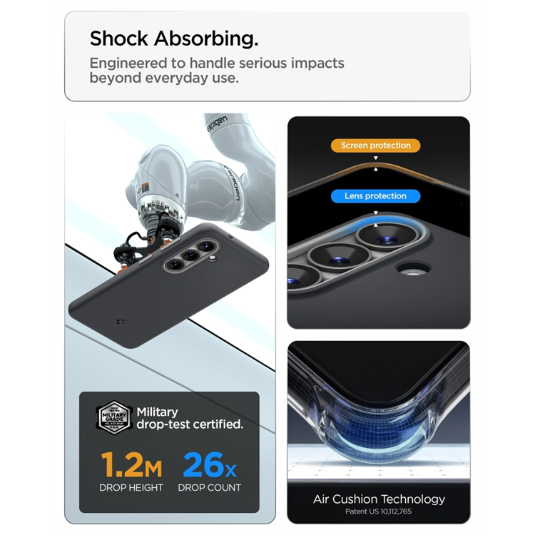 Extra luftkuddar i hörnen absorberar stötar där mobilen är som mest utsatt.