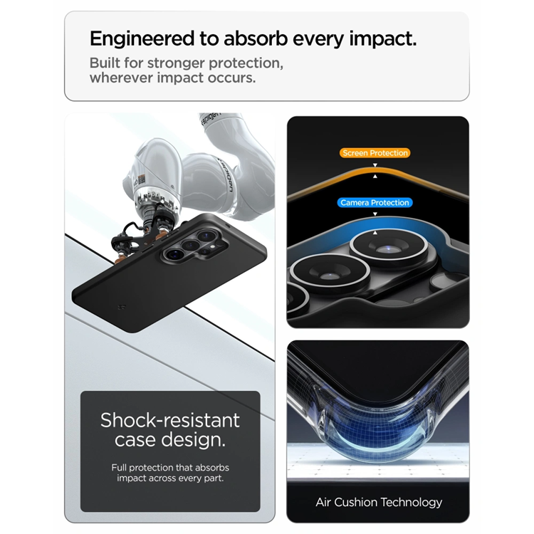 Inbyggd magnetring ger stabil anslutning till tillbehör och snabb trådlös laddning. - Effektivt vardagsskydd