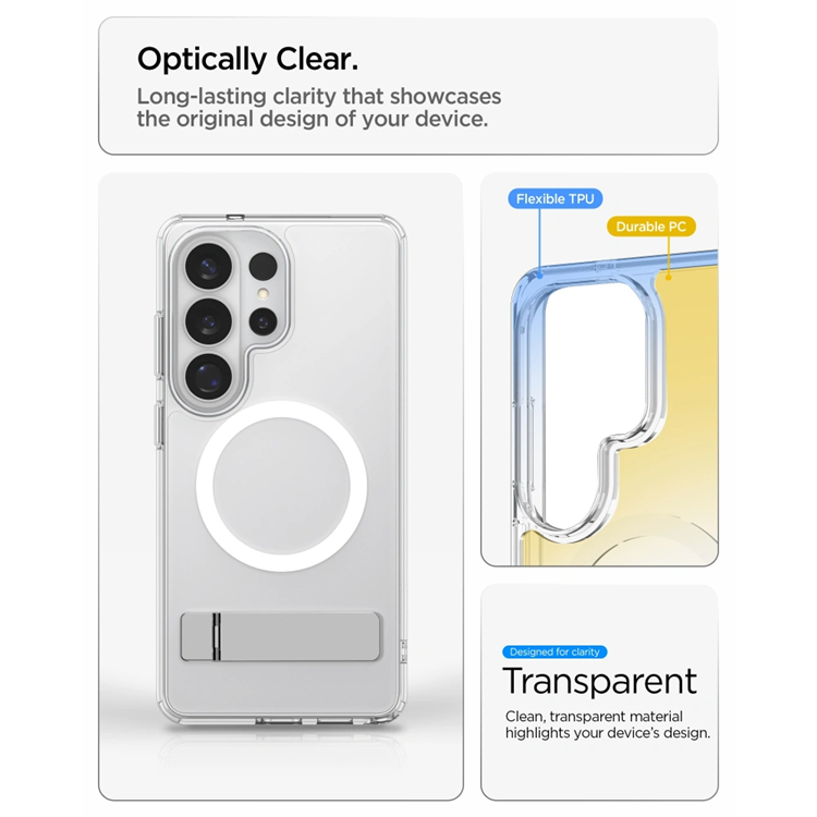 Letar du efter ett mobilskal som kombinerar stilren design, smart funktionalitet och pålitligt skydd? Spigen Ultra Hybrid “S” Mag MagSafe mobilskal är skapat för dig som vill behålla mobilens originaldesign samtidigt som du får ett robust skydd i vardagen. Den transparenta baksidan framhäver mobilens estetik, medan den integrerade kickstanden gör det enkelt att titta på filmer, delta i videosamtal eller surfa bekvämt utan att hålla mobilen i handen. Med full MagSafe-kompatibilitet och ett slimmat format får du ett mobilskal som gör din mobil både mer praktisk och bättre skyddad – varje dag.