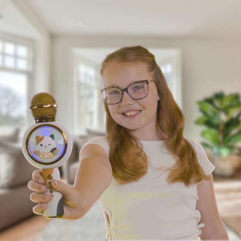 En karaokemikrofon från Squishmallows med Bluetooth och röstväxlingsfunktioner.