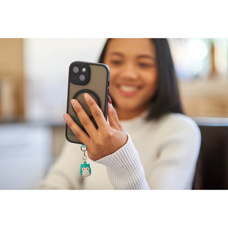 Med en nyckelringsklämma kan du enkelt fästa hänge för en lekfull touch som verkligen sticker ut. Den säkra anslutningsplattan sitter bekvämt inuti ditt telefonfodral, vilket innebär att du inte behöver klistra något på din telefon, samtidigt som din Squishmallows hålls säker.