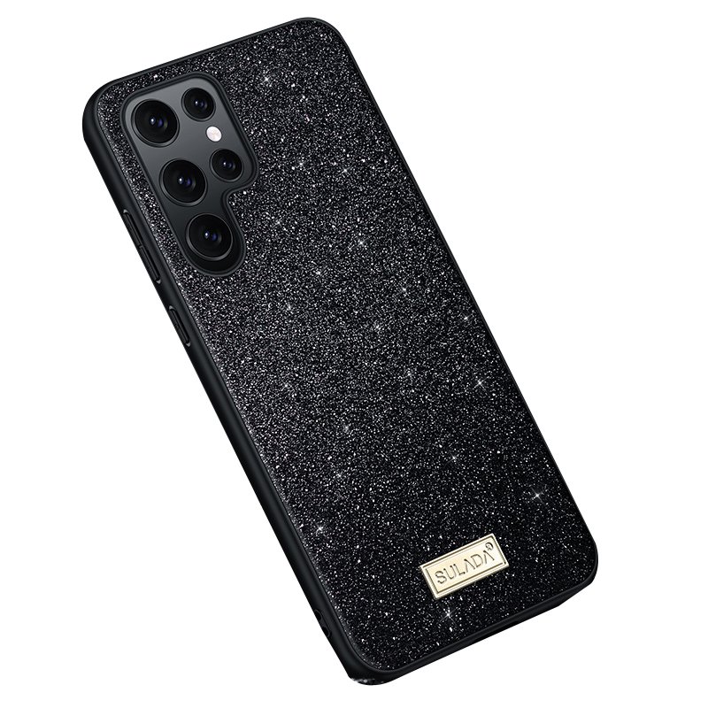 SULADA Galaxy S23 Ultra Skal PU Läder Glittrande Svart