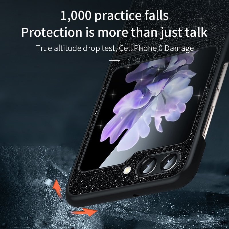 Skydda din Galaxy Z Flip5 med SULADA Glitter Skal. Detta skal kombinerar stil och funktionalitet. Det är tillverkat av hållbara material och har en glittrande yta som gör att din telefon verkligen sticker ut.