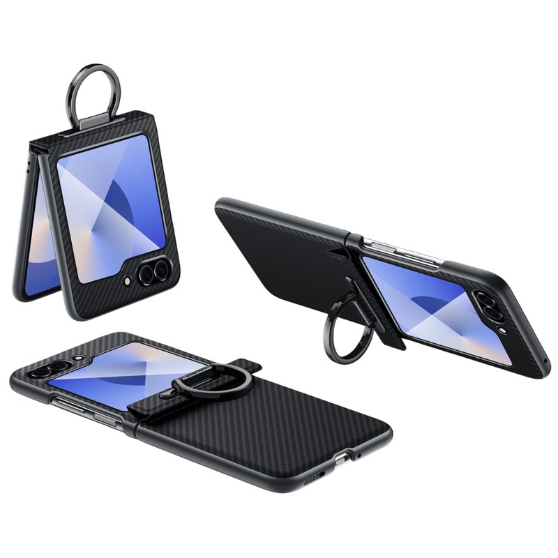 SULADA Galaxy Z Flip6 Fodral Läder PC Svart Carbon
