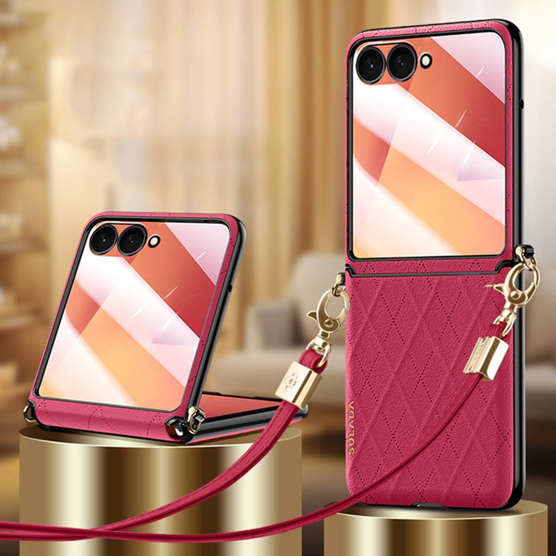 SULADA Galaxy Z Flip7 Fodral Rhombus Läder+PC Röd