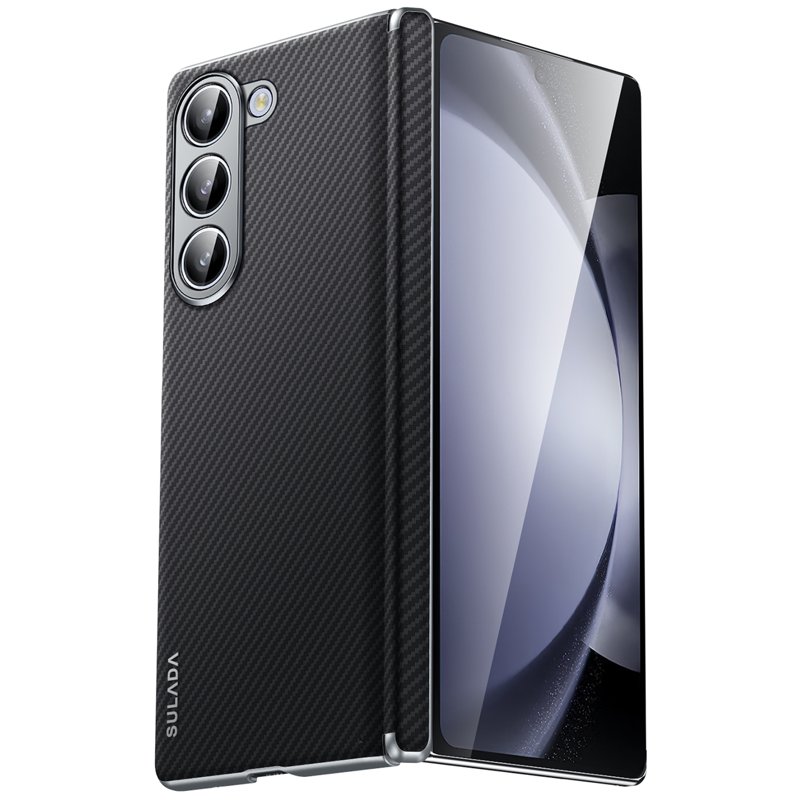 SULADA Galaxy Z Fold6 5G Skal Kolfiber Läder+PC Svart