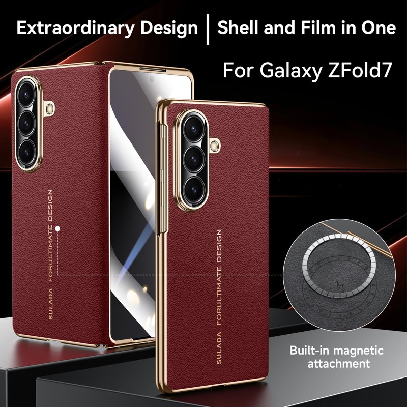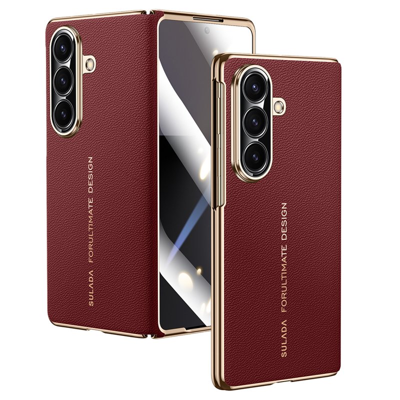 SULADA Galaxy Z Fold7 5G Skal Äkta Läder Vinröd