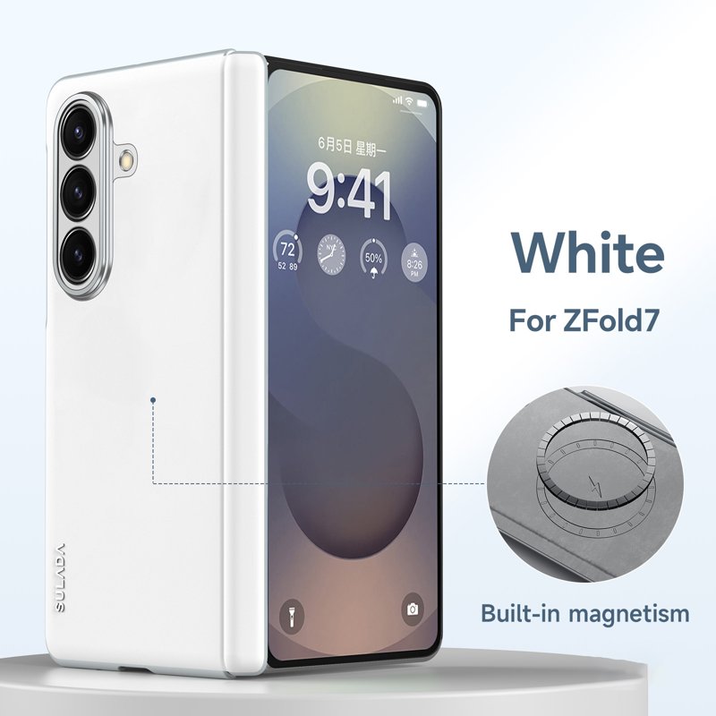 SULADA Galaxy Z Fold7 5G Skal Läder MagSafe Vit