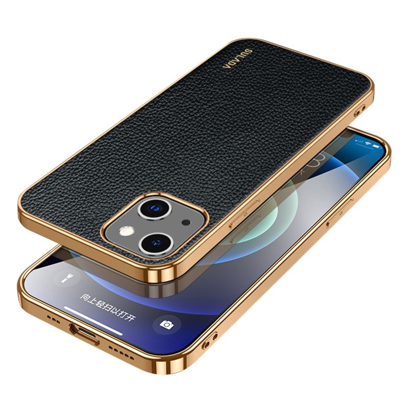 SULADA iPhone 13 Skal PU Läder Svart Scratch-Resistant