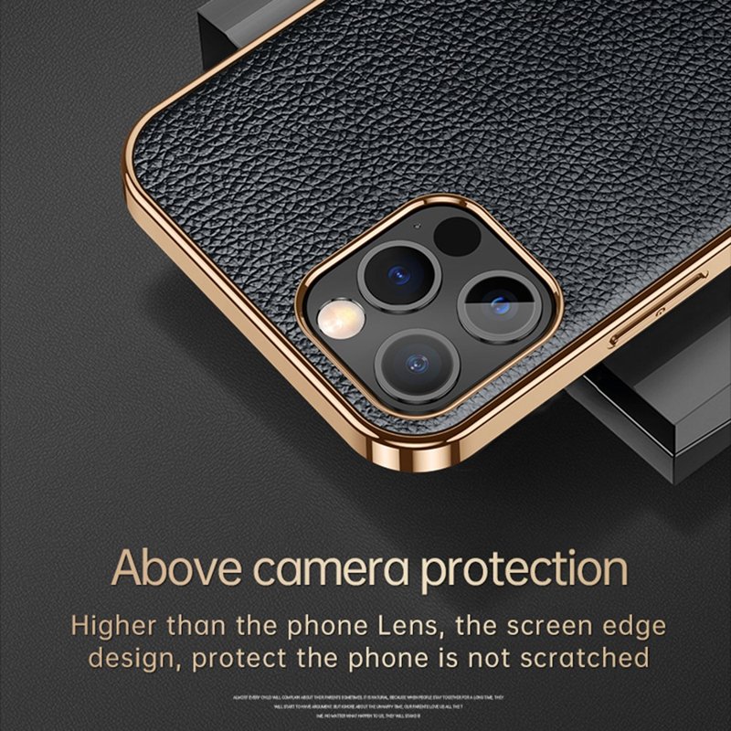 Handla denna produkt SULADA iPhone 14 Pro Skal Electroplating PU Läder Svart