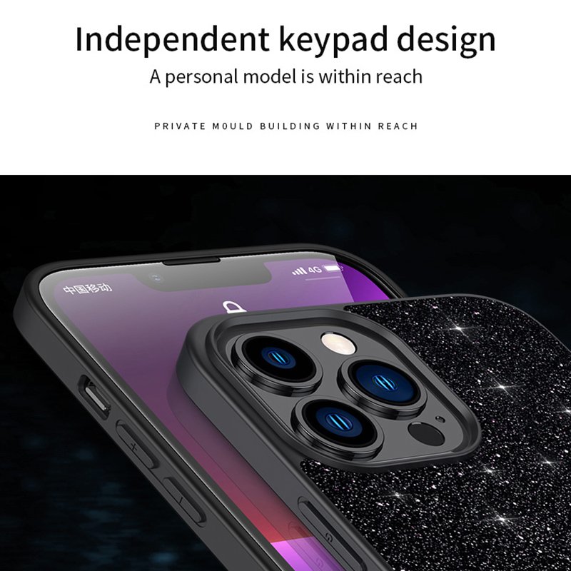 Skydda din iPhone 15 Pro Max med SULADA:s eleganta back cover. Det glittriga svarta PU-lädret ger en lyxig känsla och ett stilrent utseende. Med en kombination av hållbara material erbjuder detta fodral både skydd och stil.