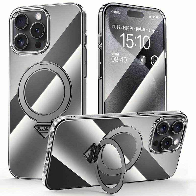 SULADA iPhone 15 Pro Skal MagSafe Kickstand Klar PC - Titan Svart
