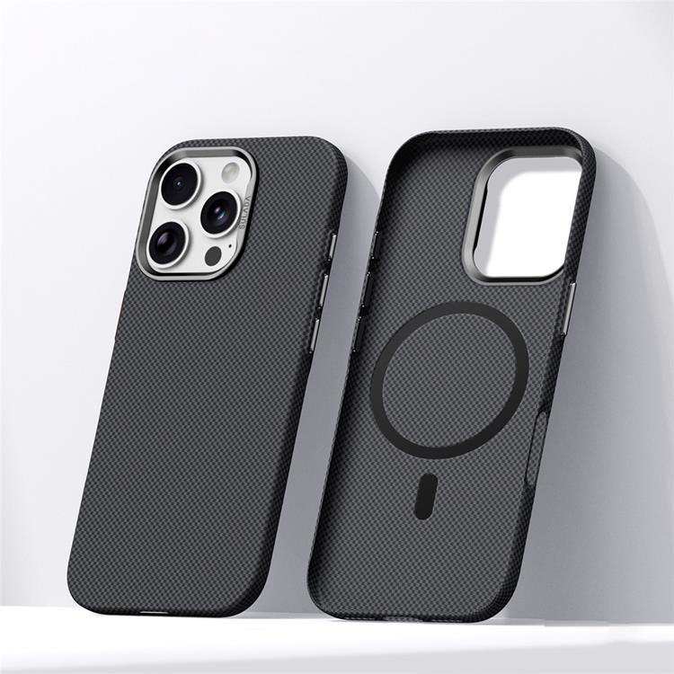 SULADA iPhone 16 Pro Max Mobilskal MagSafe Grid Texture PU Läder + TPU - Titansvart