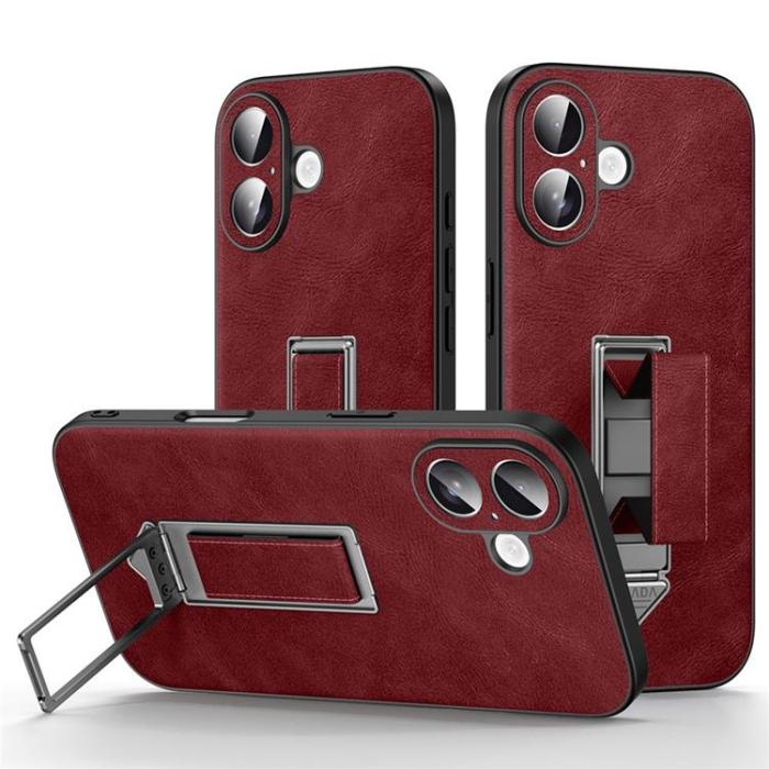 SULADA iPhone 17 Mobilskal Kickstand med Fingerrem TPU + PC + PU Läder - Vinröd