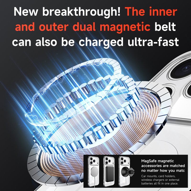 - MagSafe-kompatibel: Snabb och effektiv trådlös laddning med inbyggda magneter.