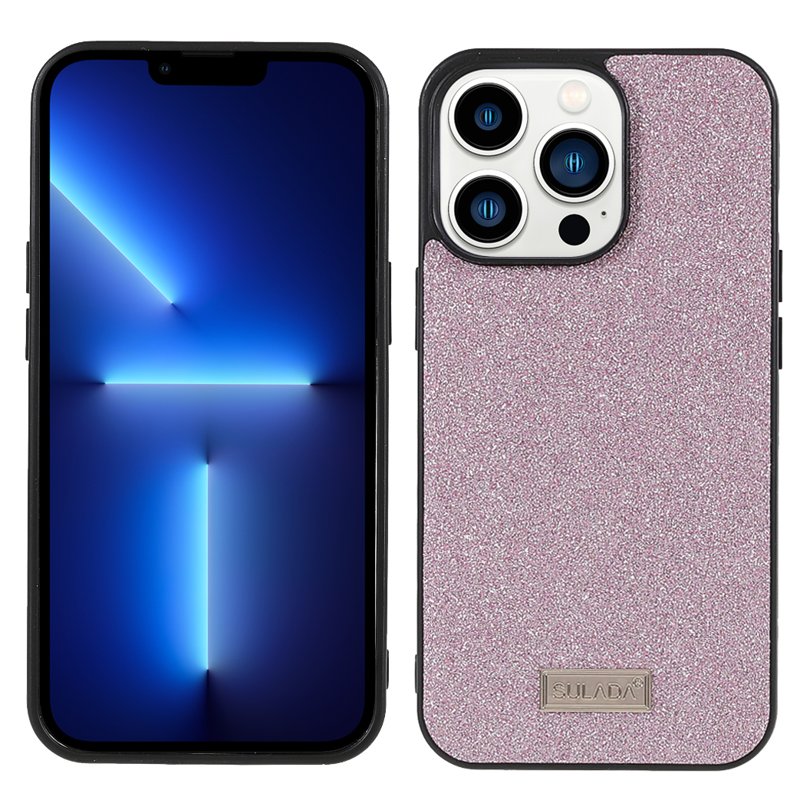 SULADA Socialite iPhone 13 Pro Skal Glitter PU Läder Rosa