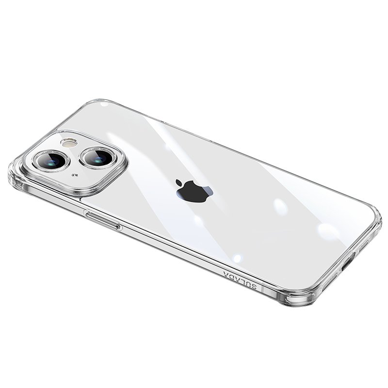 SULADA Ultra Clear Skal för iPhone 15 erbjuder ett optimalt skydd med stil. Det är tillverkat av högkvalitativ TPU och har en baksida av härdat glas. Detta skal skyddar din telefon mot repor och stötar samtidigt som det framhäver telefonens ursprungliga design.