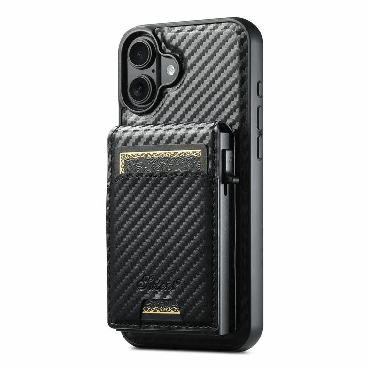 SUTENI iPhone 16 Mobilskal Magsafe Korthållare Carbon Fiber - Svart