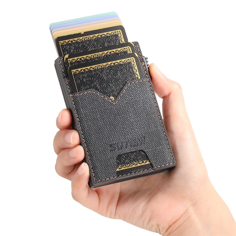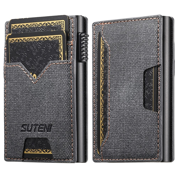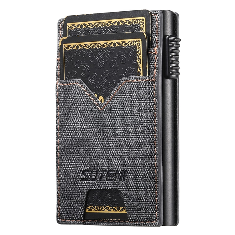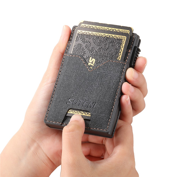 SUTENI Korthållare Automatiskt Pop-Up Metall Double-Sided Jeans Tyg Texture PU-läder - Svart
