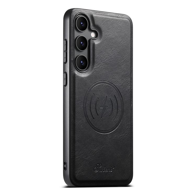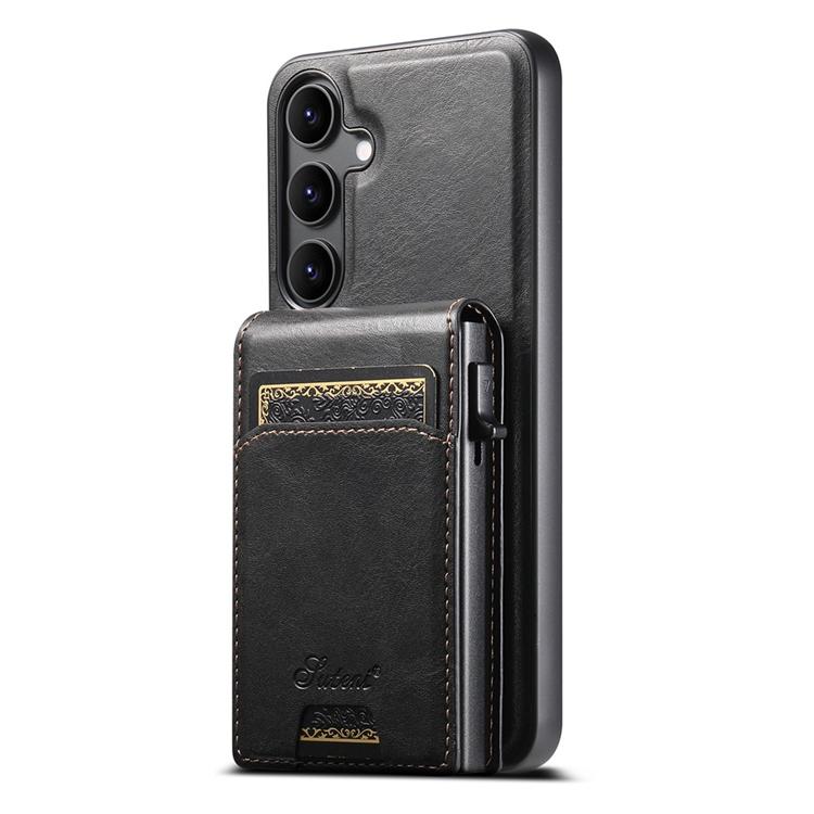 Suteni Mobilskal för Galaxy S25 MagSafe Korthållare Waxy Texture Läder H19 - Svart