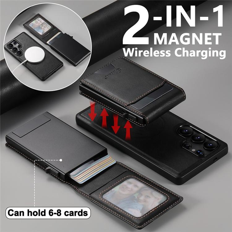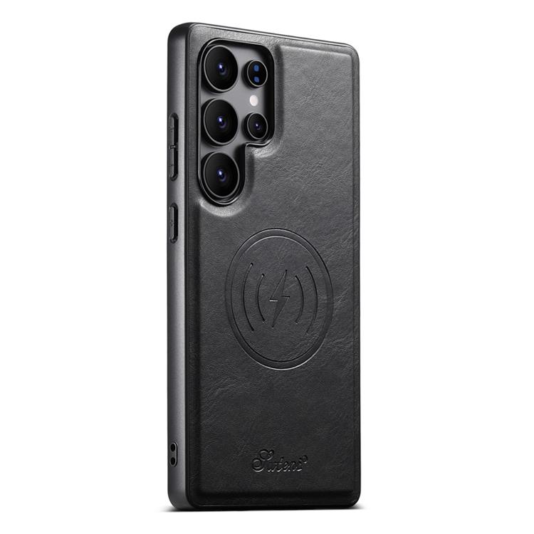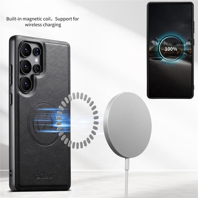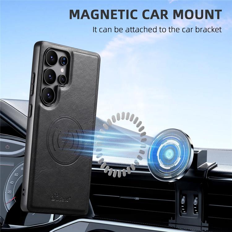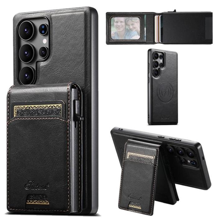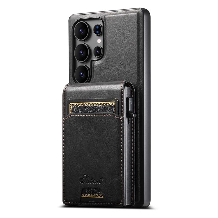 Suteni Mobilskal för Galaxy S25 Ultra MagSafe Korthållare Waxy Texture Läder H19 - Svart