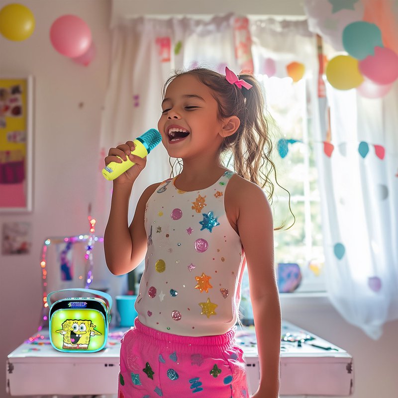 Upplev musikalisk underhållning med SVAMPBOB trådlös karaokehögtalare och mikrofon.