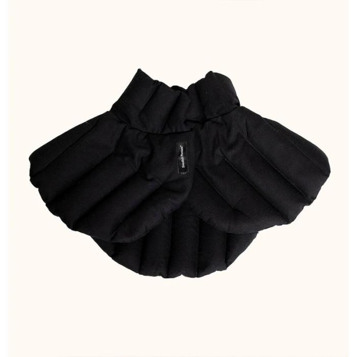 Elegant värmekrage fylld med linfrö och lavendel för en tung avkopplande känsla. Använd värmekragen över axlarna och nacken, det är som att få en tröstande kram. Värm kragen i mikrovågsugnen eller kyl den i frysen för termoterapi.