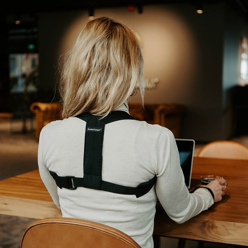 Posture brace från Swedish Posture påminner dig på ett skonsamt sätt om att hålla en god hållning.