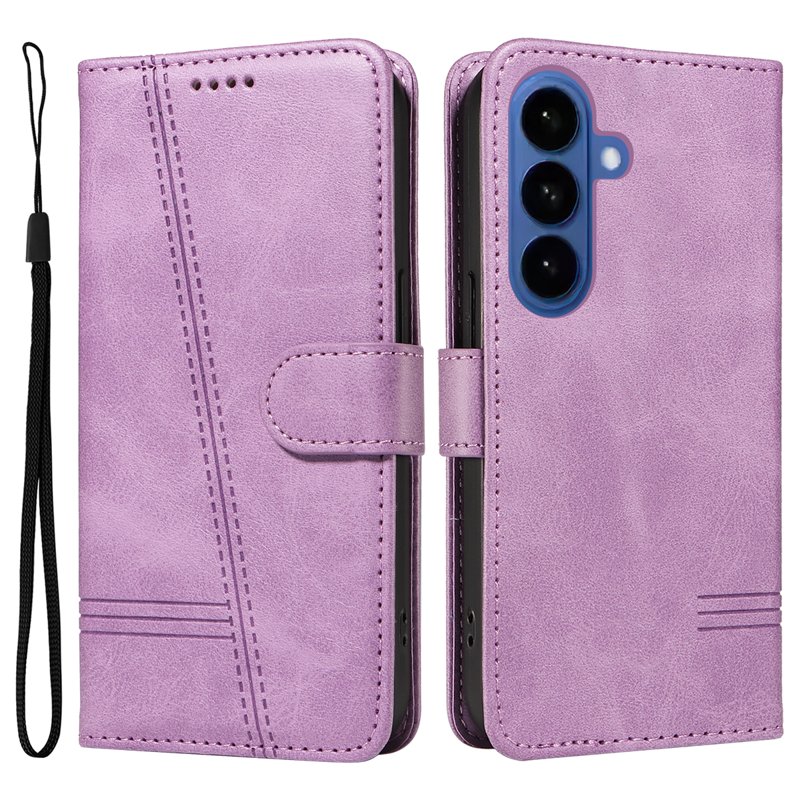 Upptäck det perfekta skyddet för din Samsung Galaxy S26 eller S26 Pro med vår T-Shape Lines Wallet Case. Denna läderfodral i ljuslila kombinerar stil och funktionalitet. Med praktiska kortfack och en stödfunktion för handsfree-användning är detta fodral idealiskt för den moderna användaren.