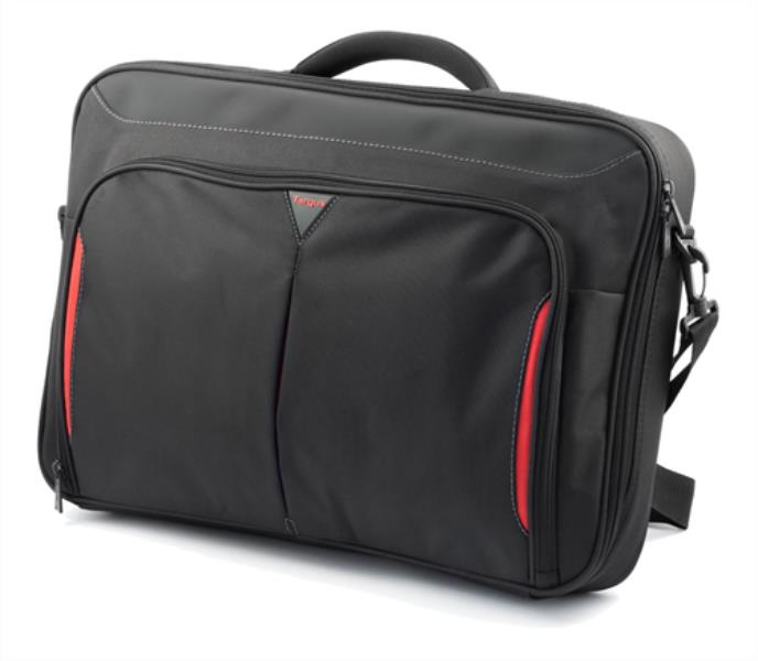 Targus Classic+ Clamshell Laptop Bag, rymmer laptops upp till 18", polyester, axelrem, svart/röd