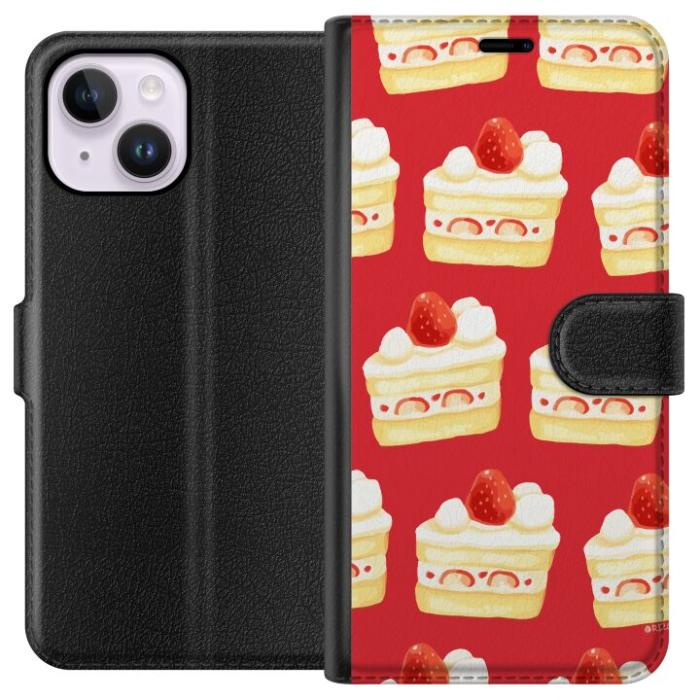 Plånboksfodral för iPhone 14 Plus med Tårta -design. Fodralet kombinerar stil och funktion – ett slitstarkt mobilskal som skyddar mot repor och stötar samt praktiska kortfack på insidan.
