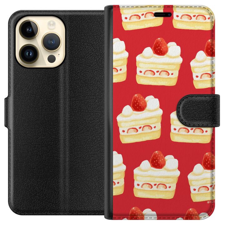 Plånboksfodral för iPhone 15 Pro Max med Tårta -design. Fodralet kombinerar stil och funktion – ett slitstarkt mobilskal som skyddar mot repor och stötar samt praktiska kortfack på insidan.