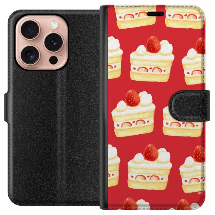 Plånboksfodral för iPhone 16 Pro med Tårta -design. Fodralet kombinerar stil och funktion – ett slitstarkt mobilskal som skyddar mot repor och stötar samt praktiska kortfack på insidan.