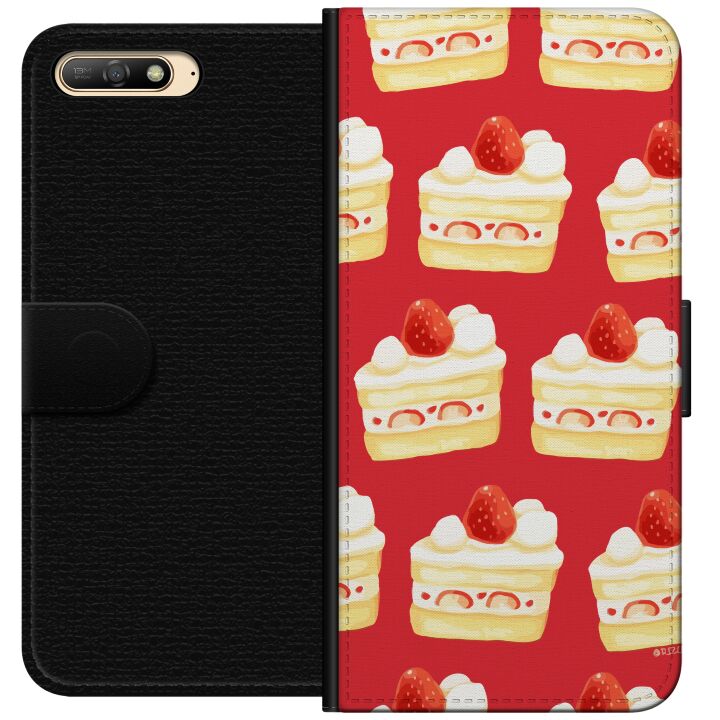 Plånboksfodral för Y6 (2018) med Tårta -design. Fodralet kombinerar stil och funktion – ett slitstarkt mobilskal som skyddar mot repor och stötar samt praktiska kortfack på insidan.