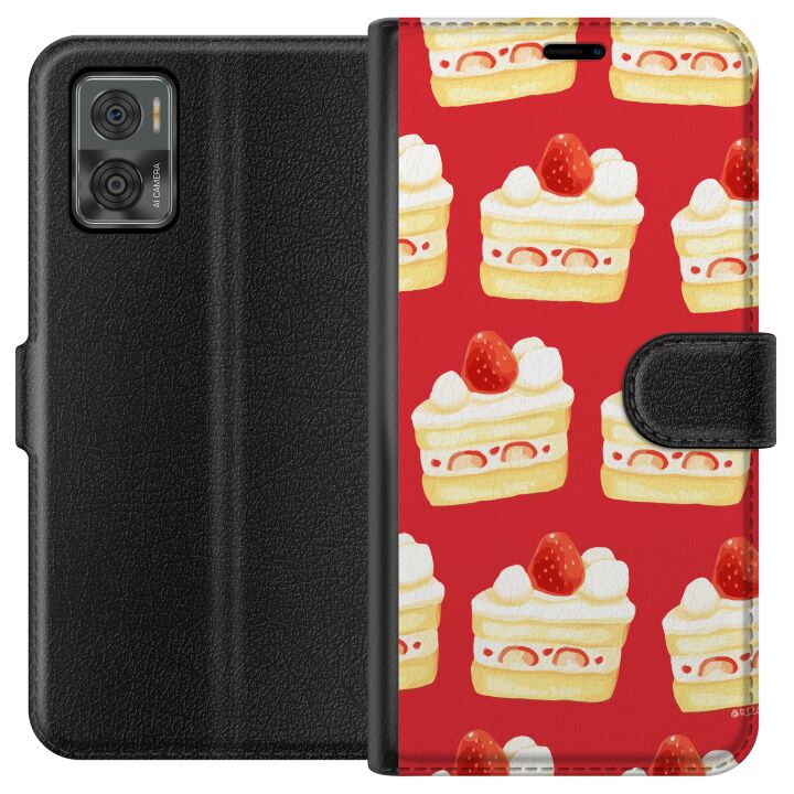Plånboksfodral för Moto E22i med Tårta -design. Fodralet kombinerar stil och funktion – ett slitstarkt mobilskal som skyddar mot repor och stötar samt praktiska kortfack på insidan.