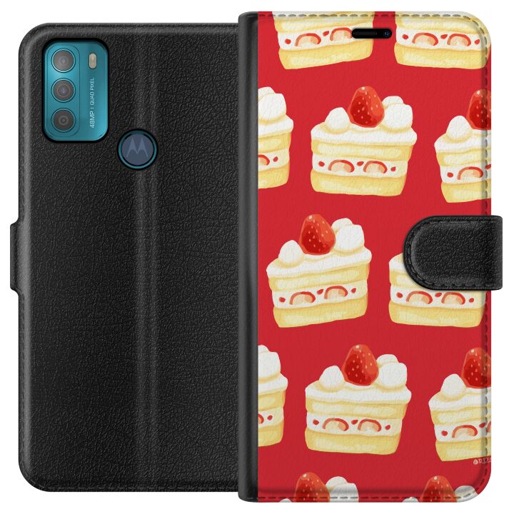 Plånboksfodral för Moto G50 med Tårta -design. Fodralet kombinerar stil och funktion – ett slitstarkt mobilskal som skyddar mot repor och stötar samt praktiska kortfack på insidan.