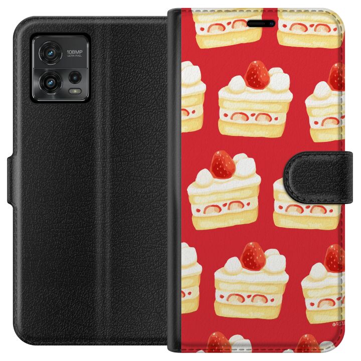 Plånboksfodral för Moto G72 med Tårta -design. Fodralet kombinerar stil och funktion – ett slitstarkt mobilskal som skyddar mot repor och stötar samt praktiska kortfack på insidan.