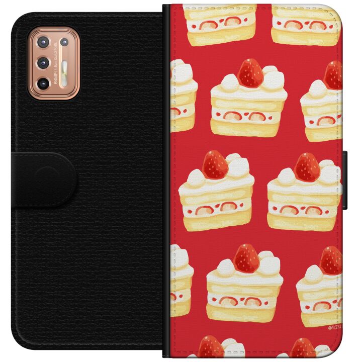 Plånboksfodral för Moto G9 Plus med Tårta -design. Fodralet kombinerar stil och funktion – ett slitstarkt mobilskal som skyddar mot repor och stötar samt praktiska kortfack på insidan.