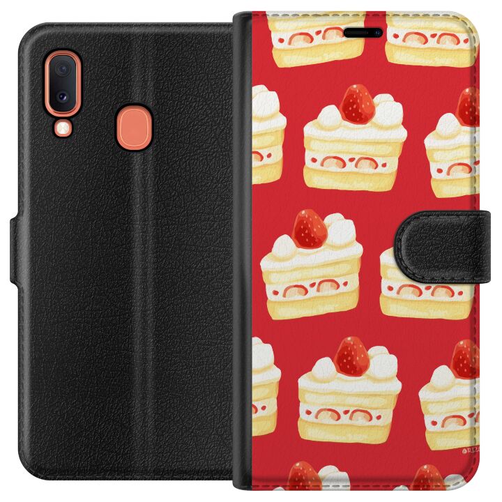 Plånboksfodral för Galaxy A20e med Tårta -design. Fodralet kombinerar stil och funktion – ett slitstarkt mobilskal som skyddar mot repor och stötar samt praktiska kortfack på insidan.