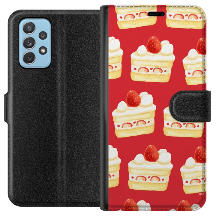 Plånboksfodral för Galaxy A72 5G med Tårta -design. Fodralet kombinerar stil och funktion – ett slitstarkt mobilskal som skyddar mot repor och stötar samt praktiska kortfack på insidan.